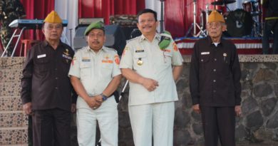 Usai menyampaikan paparan terkait filosopi sarung, Kiai Abdul Manan selaku perwakilan Pengurus Besar Nahdhatul Ulama terlihat menyematkan kain sarung berwarna hijau di leher Bupati Purwakarta Dedi Mulyadi sebagai simbol perintah untuk menjaga nilai-nilai ke-NU-an di Jawa Barat. (03)
