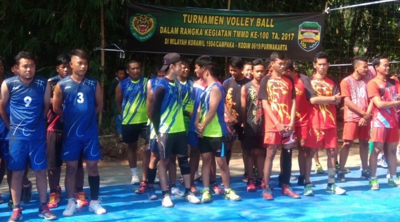 PURWAKARTA – Program Kerja TMMD 100 melakukan kegiatan berupa pembangunan insprastruktur dan non insfrastruktur, takhalnya hal yang dilakukan oleh anggota Koramil 1904/ Cempaka dengan mengadakan kegiatan non insfrastruktur berupa pertandingan turnamen bola Volly.