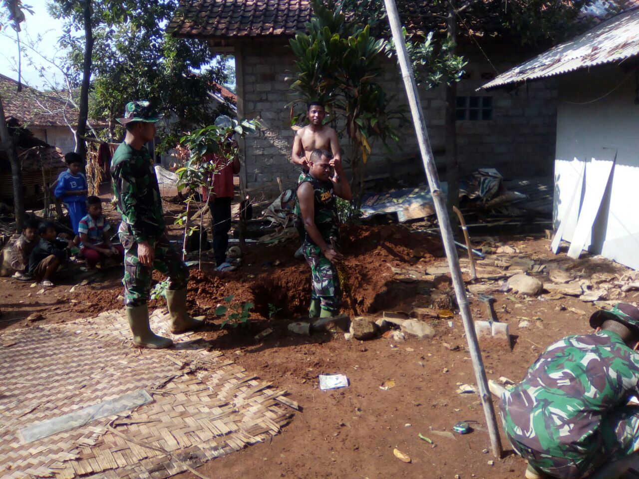 PURWAKARTA – Waktu yg padat dg target yg harus tercapai dlm Waktu singkat tdk melunturkan semangat Anggota TNI yg sedang melaksanakan TMMD Ke.100 di Desa.Margaluyu Kecamatan Kiara Pedes ini di hari yg ke 4 itu di buktikan oleh Prajurit2 TNI di sela2 waktu istirahat makan para prajurit tdk melaksanakan makan dulu tp Berbuat sosial kepada salah satu warga yg tdk mempunyai MCK. Orang tersebut sdah lanjut Usia maka para prajurit terpanggil unk membuatkan sebuah lubang MCK yg layak walau sederhana.