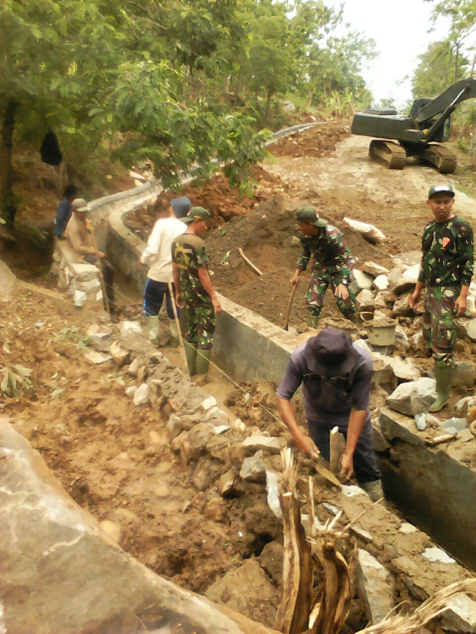 “Saluran pembuangan air dari jalan memang penting, jadi sebagian jalan yang sudah diperkeras batu segera dibuatkan juga saluran airnya, hal ini penting apalagi sekarang sudah masuk musim hujan”, ungkap Kaptem Arm Wahyu Widodo”, pungkasnya.