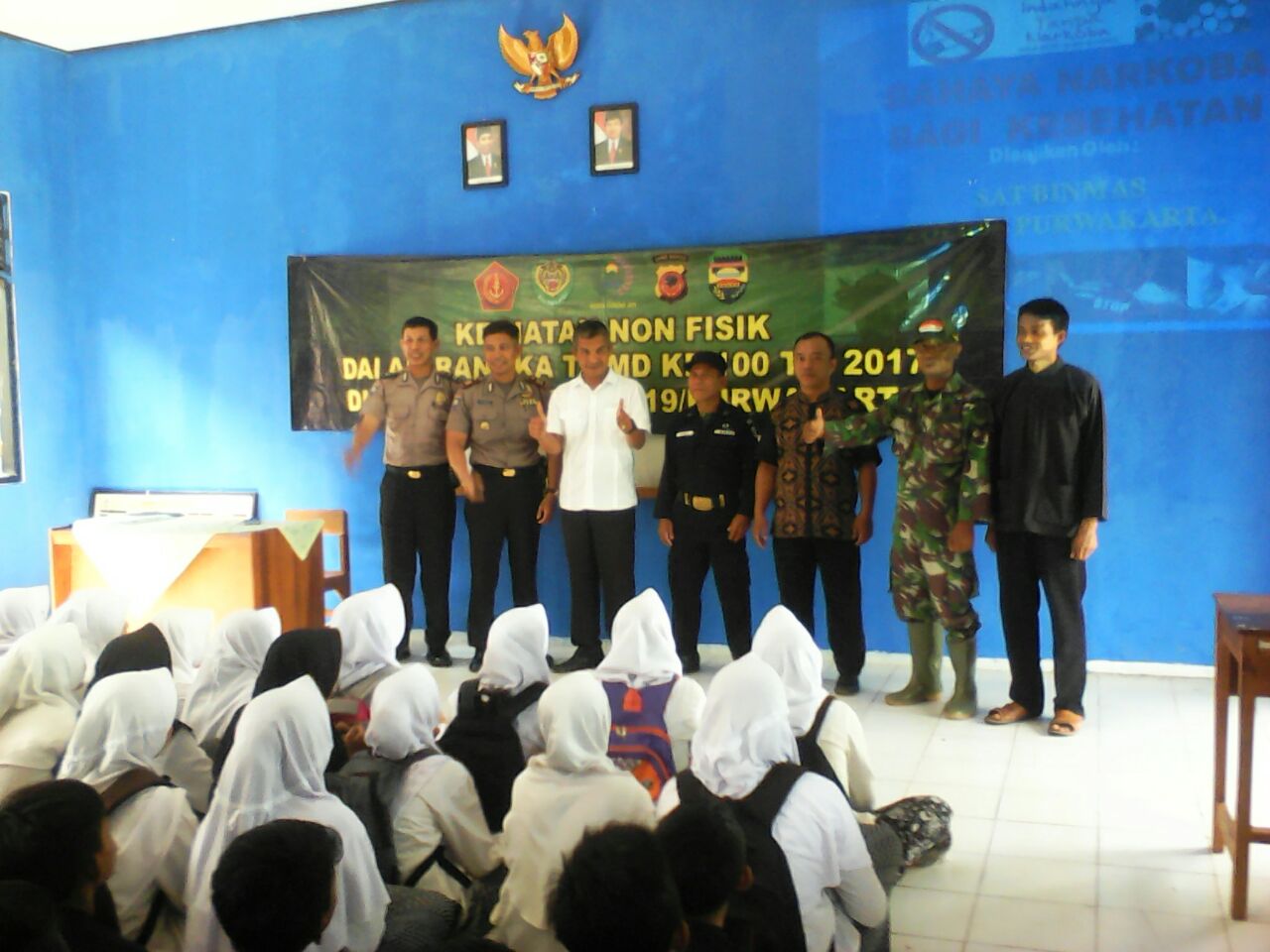 PURWAKARTA – Kegiatan Non Pisik di TMMD 100 berupa Penyuluhan Terkait Bahaya Narkoba di gelar di SMP 1 Atap 2, Desa Mekarjaya, Kec.kiarapedes,Kab.Purwakarta.