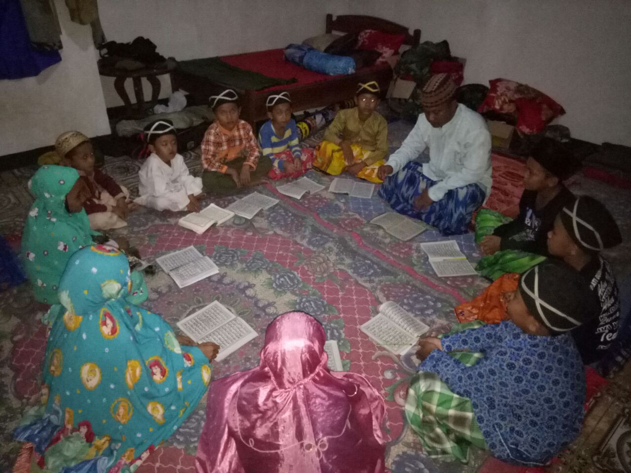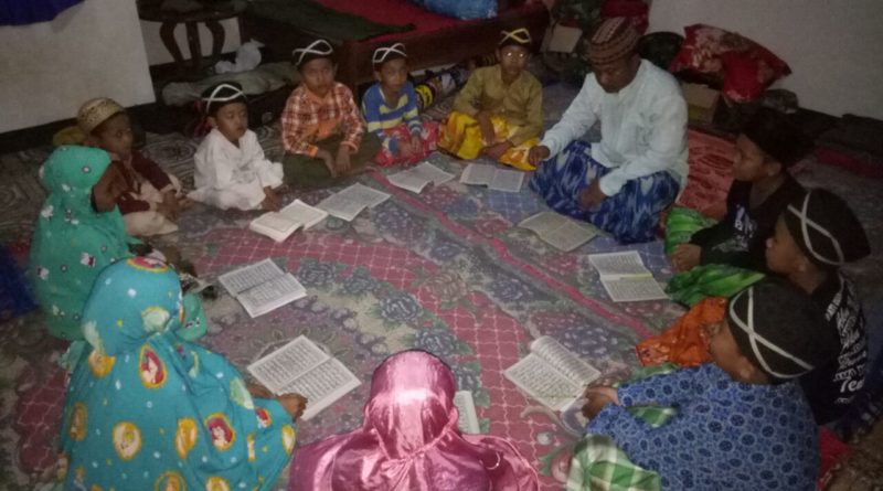 Anggota Satgas TMMD ke 100 memimpin pengajian bersama anak-anak warga masyarakat setempat khususnya yang ada di Desa Mekarjaya Kecamatan Kiarapedes, Kabupaten Purwakarta.