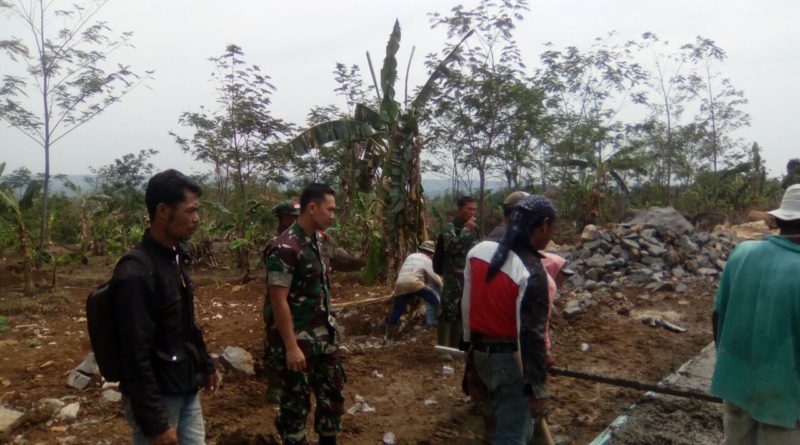 DANSATGAS TMMD KE 100 TINJAU YG BEKERJA PENGECORAN JALAN.