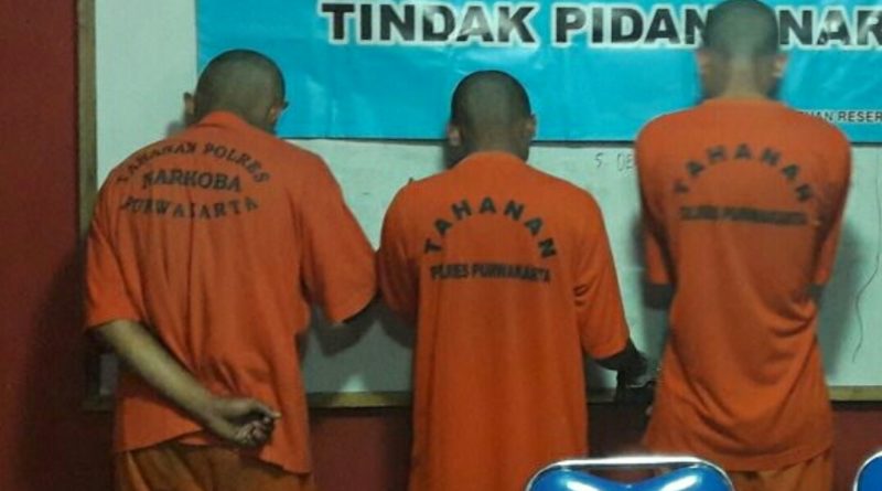 PURWAKARTA – Lagi, Satres Narkoba Polres Purwakarta Jawa Barat , berhasil menangkap 3 orang yang diduga pengguna sekaligus pengedar narkoba golongan satu jenis ganja.
