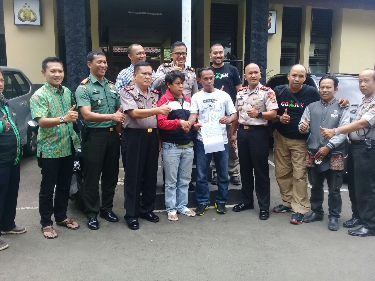 Dalam pertemuan tersebut disepakati bahwa dari pihak ojek online akan mencabut laporan dan dari pihak ojek pangkalan meminta maaf serta menandatangi surat perjanjian dan tetap akan menjaga situasi Kamtibmas tetap kondusif.