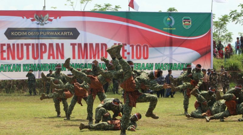 PURWAKARTA – Dalam Upacara penutupan TMMD 100 dilapangan Cempaka isna Desa Margaluyu di meriahkan dengan Bela Diri Silat dari Satuan batalyon Armed 9 dan masyarakat dari perguruan silat teratai setia hati.