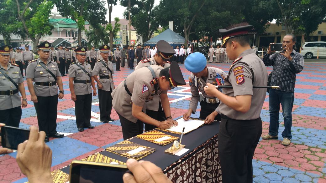 Sertijab dilakukan oleh 4 kepala kepolisian sektor (Kapolsek) dan kepala satuan (Kasat) Lalu Lintas yang dipimpin langsung Kapolres Purwakarta, AKBP Dedy Tabrani, Kamis (18/01/2018).