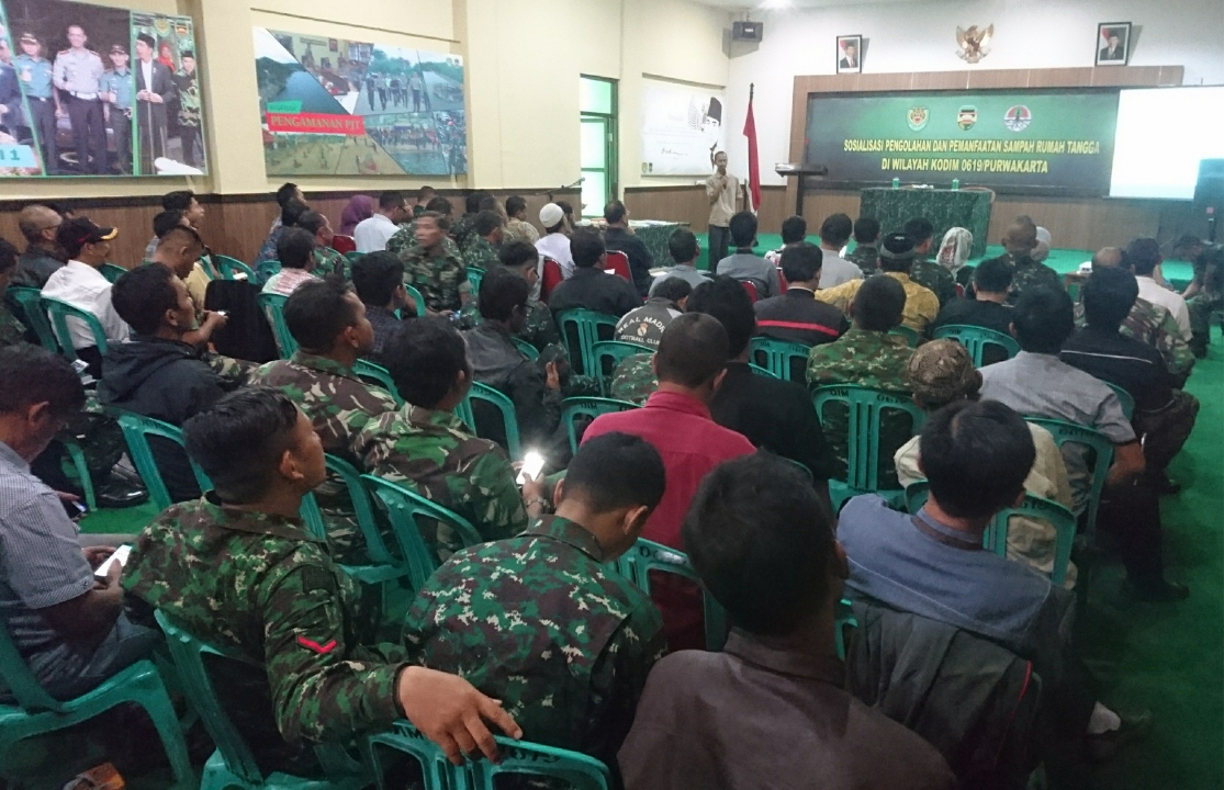 PURWAKARTA-Kodim 0619/Purwakarta menggelar Sosialisasi Pengolahan dan Pemanfaatan Sampah Rumah Tangga di Aula Kebhinekaan Makodim 0619/Purwakarta, Selasa (23/1).