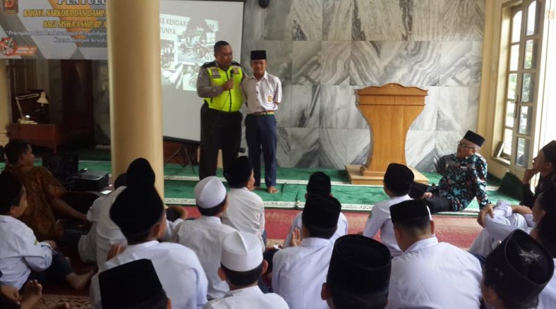 PURWAKARTA – Sebanyak 220 siswa siswi di Sekolah Menengah Pertama Berbasis Pesantren (SMP BP) Al-Mutohar, Kecamatan Plered, Kabupaten Purwakarta tampak serius mendengarkan sosialisasi bahaya Narkoba yang diberikan Pihak Kepolisian Sektor (Polsek) Plered.