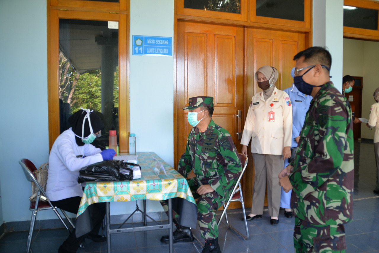 SUBANG – Dalam mengatasi kekurangan pasokan darah pada saat wabah Covid-19, anggota TNI dan Pengawai Negeri Sipil (PNS) Angkatan Udara serta PIA Ardhya Garini yang berada di lingkungan Lanud Suryadarma ikut melaksanakan donor darah yang bekerja sama dengan PMI Kabupaten Subang, bertempat di Aula Chooper Lanud Suryadarma, Kalijati, Subang, Rabu (22/4/2020)