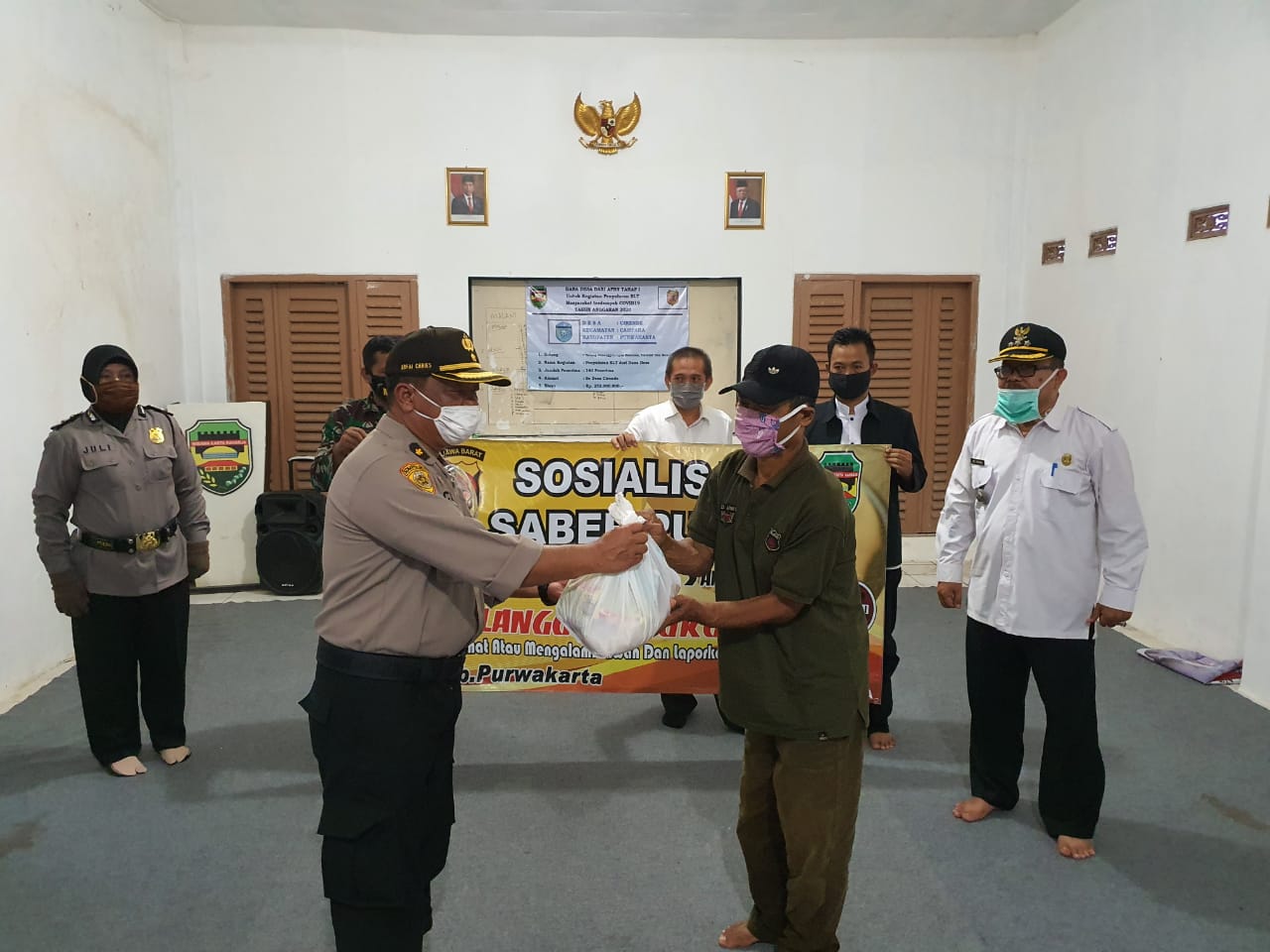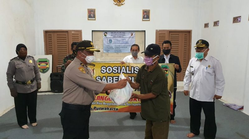 Dalam kesempatan itu juga, sebagai bentuk kepedulian jajaran Polres Purwakarta, pihaknya menyerahkan bantuan paket sembako kepada sejumlah warga yang terdampak Covid-19.