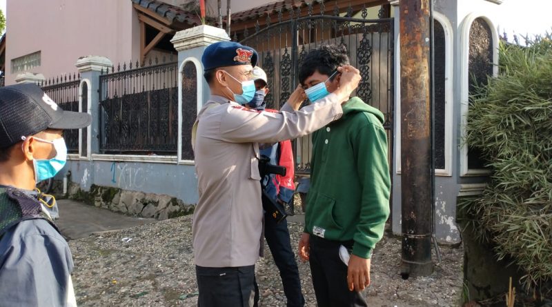 PURWAKARTA – Anggota Kompi 3 Batalyon C Pelopor Satuan Brimob Polda Jabar, Bripka Jajang Iskandar melaksanakan pemberian masker kepada warga desa Darangdan guna pencegahan Covid-19.