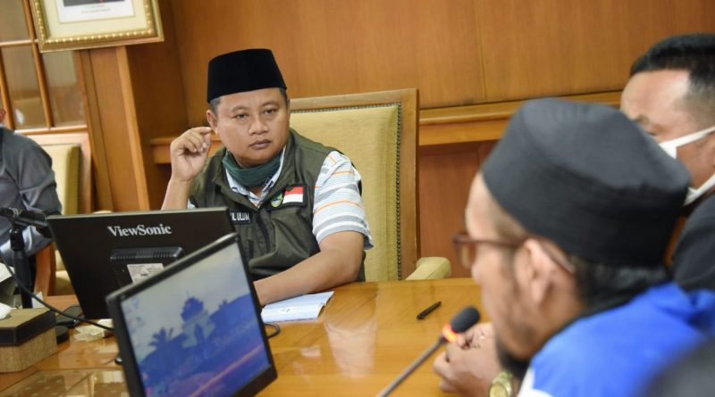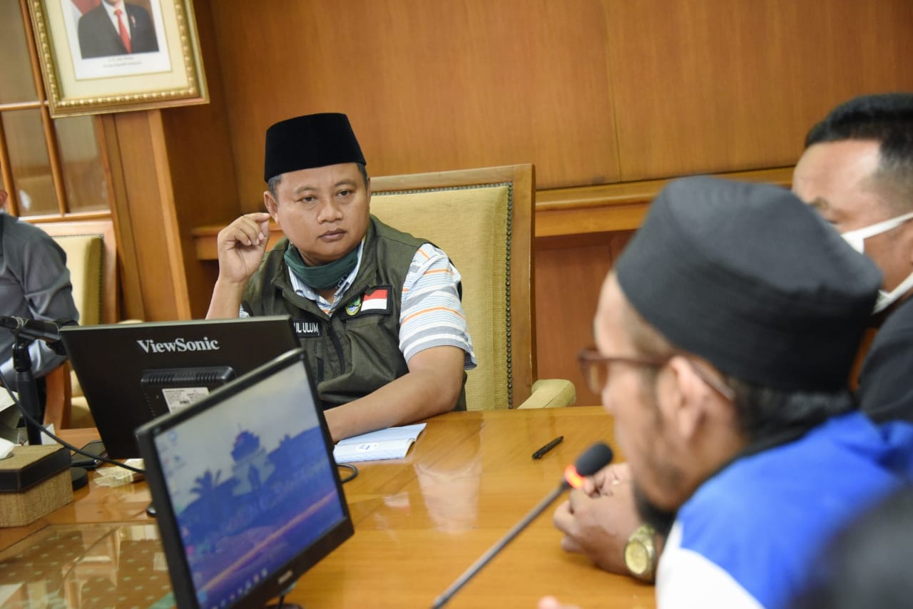 KOTA BANDUNG* — Wakil Gubernur (Wagub) Jawa Barat (Jabar) Uu Ruzhanul Ulum menerima audiensi serikat buruh di Jabar, di Gedung Sate, Kota Bandung, Selasa (30/6/20).