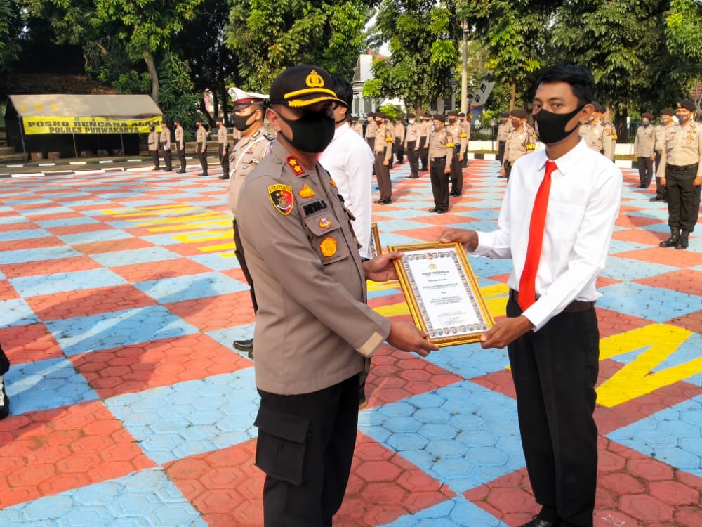 PURWAKARTA – Empat personel Polres Purwakarta yang berprestasi, menerima penghargaan dari Kapolres Purwakarta AKBP Indra Setiawan, pada Senin (13/5/2020), di lapangan apel Mapolres Purwakarta.
