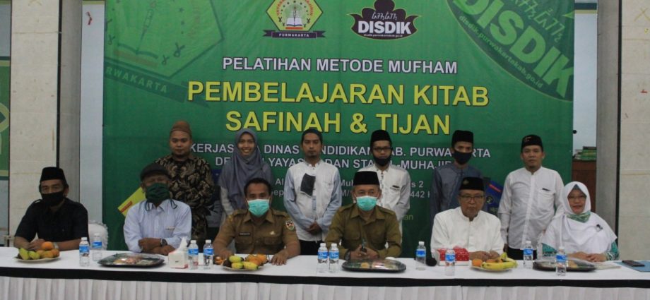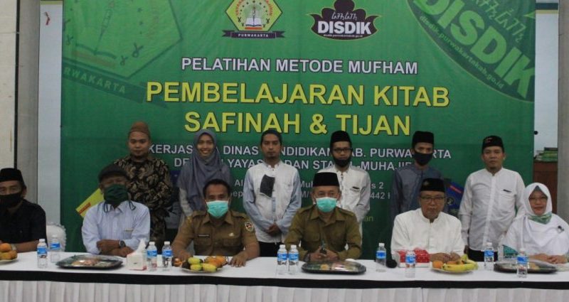 PURWAKARTA – Disdik Kabupaten Purwakarta bekerjasama dengan Yayasan dan STAI Al-Muhajirin gelar pelatihan metode Mifham (Mudah dan Faham) pembelajaran kitab Safinah dan Tijan yang dilaksanakan di Aula Al-Madinah Kampus 2 Al-Muhajirin, Senin – Selasa (28-29/10/2020) yang di buka langsung oleh Kepala Dinas Pendidikan Kabupaten Purwakarta DR. H. Purwanto, M.Pd