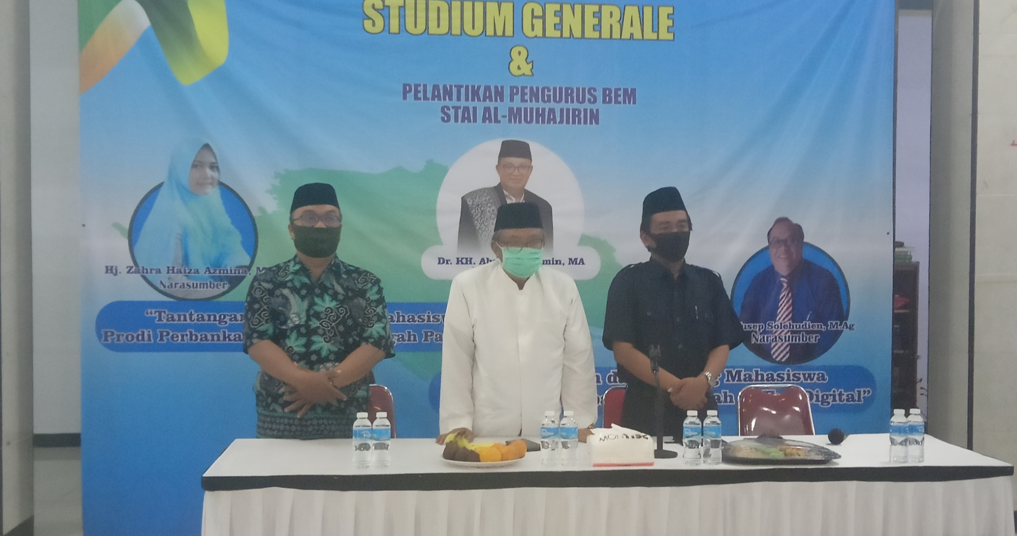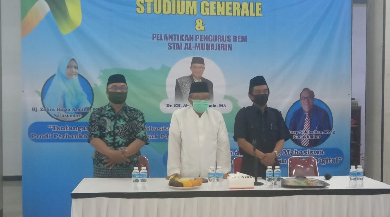 PURWAKARTA – Tantangan dan peluang mahasiswa prodi QT dan perbankan syariah di tengah Pandemi dan di era digital menjadi tema di acara Stadium Generale dan pelantikan pengurus BEM STAI Al-Muhajirin yang di gelar di Aula Al-Madinah Kampus 2, Kamis, (08/10/2020) dengan narasumber Hj. Zahra Haiza Azmina, M.Ag dan DR Yusep Solehudien, M.Ag