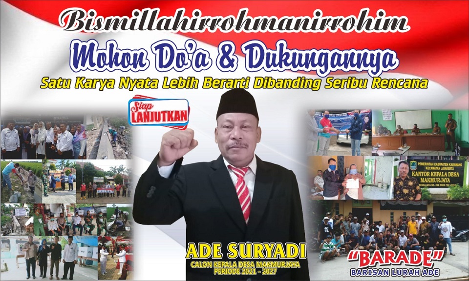 Salahsatu nya Calon incumbent, “Ade Suryadi” mengajak seluruh warga untuk mendukungnya dalam Pilkades Makmur Jaya dengan mengajak seluruh warga Desa Maknur Jaya datang ke TPS pada 21 Maret dengan mencoblos atau memilih dirinya.