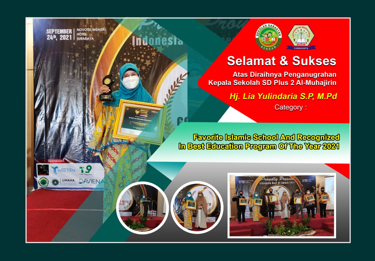 PURWAKARTA – Kepala SD Plus 2-3 Al-Muhajirin Kampus 2 Hj Lia Yulindaria, M.Pd selalu memberikan yang terbaik untuk Ponpes Al-Muhajirin dengan meraih berbagai prestasi dan penghargaan, seperti di tahun 2019, Hj. Lia mendapatkan anugrah sebagai Guru Inspiratif Indonesia Tahun 2019 Tingkat Nasional dan mendapatkan penghargaan dari Presiden RI. Seakan tak pernah berhenti kali ini September 2021 Hj. Lia kembali mengharumkan Ponpes Al-Muhajirin dengan meraih Penganugerahan dalam Kategori : “Favorite Islamic School and Recognized in Best Education Programs of The Year 2021”