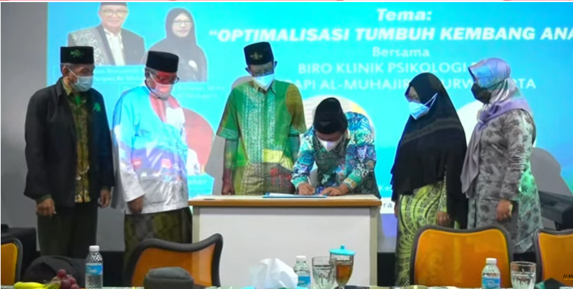 Sementara itu ketua Yayasan Al-Muhajirin, Dr. Hj. Ifa Faizah Rohmah, M.Pd dalam sambutannya menyampaikan bahwa divisi psikologi dan fisioterapi Al-Muhajirin merupakan cita-cita kami, untuk bisa mewujudkan layanan psikologi dan terapi, karena kita menyadari bahwa pendidikan kita ini harus bisa dirasakan oleh semua komponen