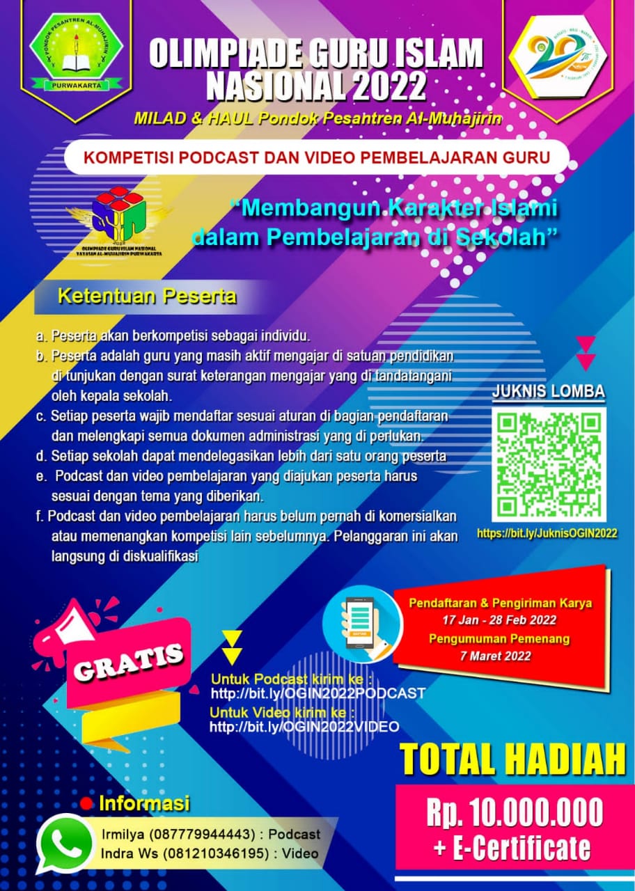 Salah satu lomba yang dilaksanakan secara Daring yaitu Olimpiade Guru Islam Nasional (OGIN), kompetesi prodcast dan video pembelajaran guru dengan hadiah utama Rp.10.000.000,- dengan peserta umum untuk semua guru yang masih aktif mengajar. Dengan tema Membentuk Karakter Islami Dalam Pembelajaran di Sekolah