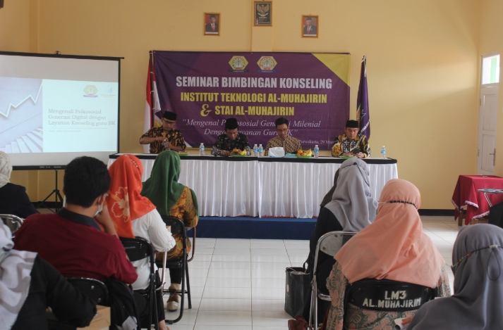 PURWAKARTA – Sekolah Tinggi Agama Islam (STAI) dan Institut Teknolgi Al-Muhajirin (ITM) gelar seminar Bimbingan Konseling (BK) dengan tema “Mengenal Psikososial Generasi Milenial Dengan Pelayanan Guru BK”, dengan peserta guru BK SMA-SMK dan MA di Aula STAI Al-Muahijirin, Selasa (29/03/22).