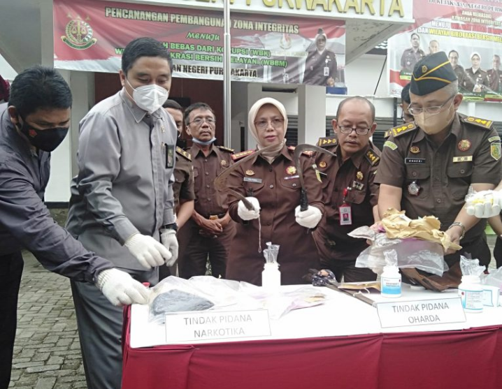 Kasi Barang Bukti dan Perampasan Muhammad Miftah Winata, SH.MH menyampaikan, barang bukti yang dimusnahkan yakni dari barang bukti tindak pidana penyalagunaan Narkotika sebanyak 58 perkara dengan jumlah barang bukti 130.9663 gram ganja, 67.1054 gram tembakau sintetis, dan 248, 7036 gram barang bukti berupa sabu.