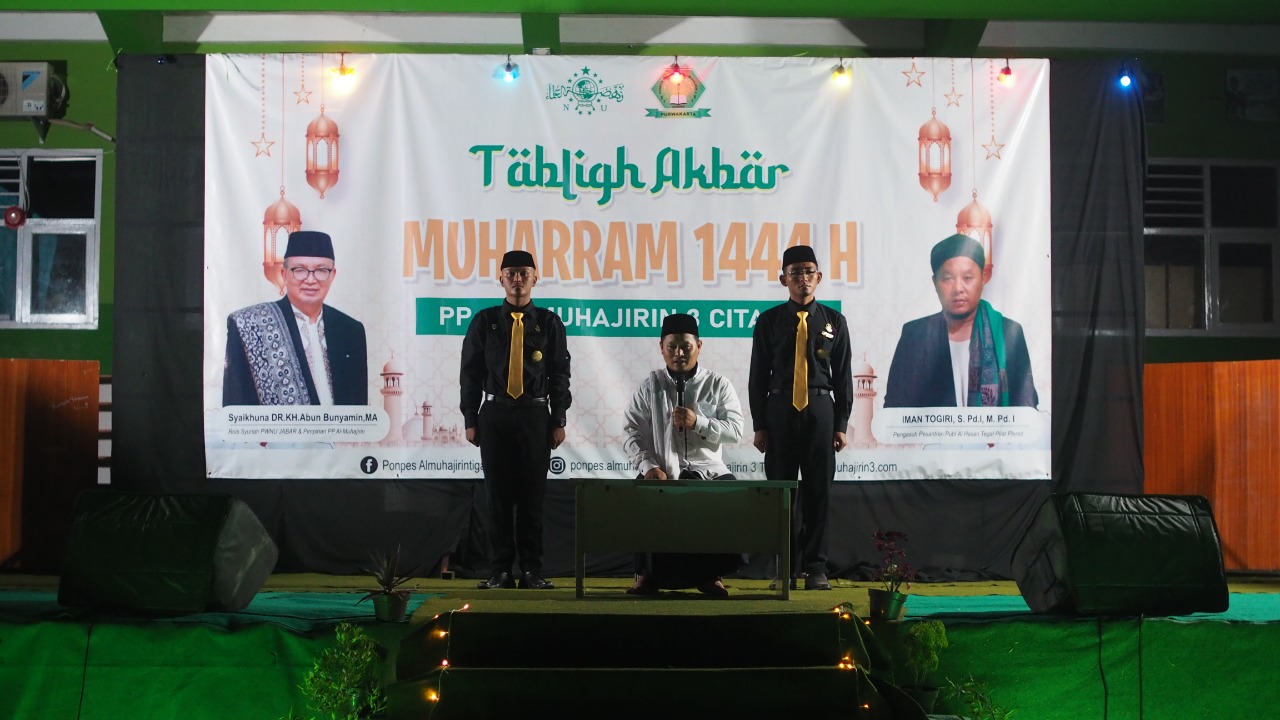 Ini merupakan kegiatan agenda tahunan yang dilakukan oleh Pondok Pesantren Al-Muhajirin 3 guna meningkatkan rasa akan penting nya kita sebagai umat islam terhadap tahun baru hijriah,tabligh akbar ini di ikuti oleh semua santri Pondok Pesantren Al-Muhajirin 3 yang berjumlah 900 orang, dan para guru.