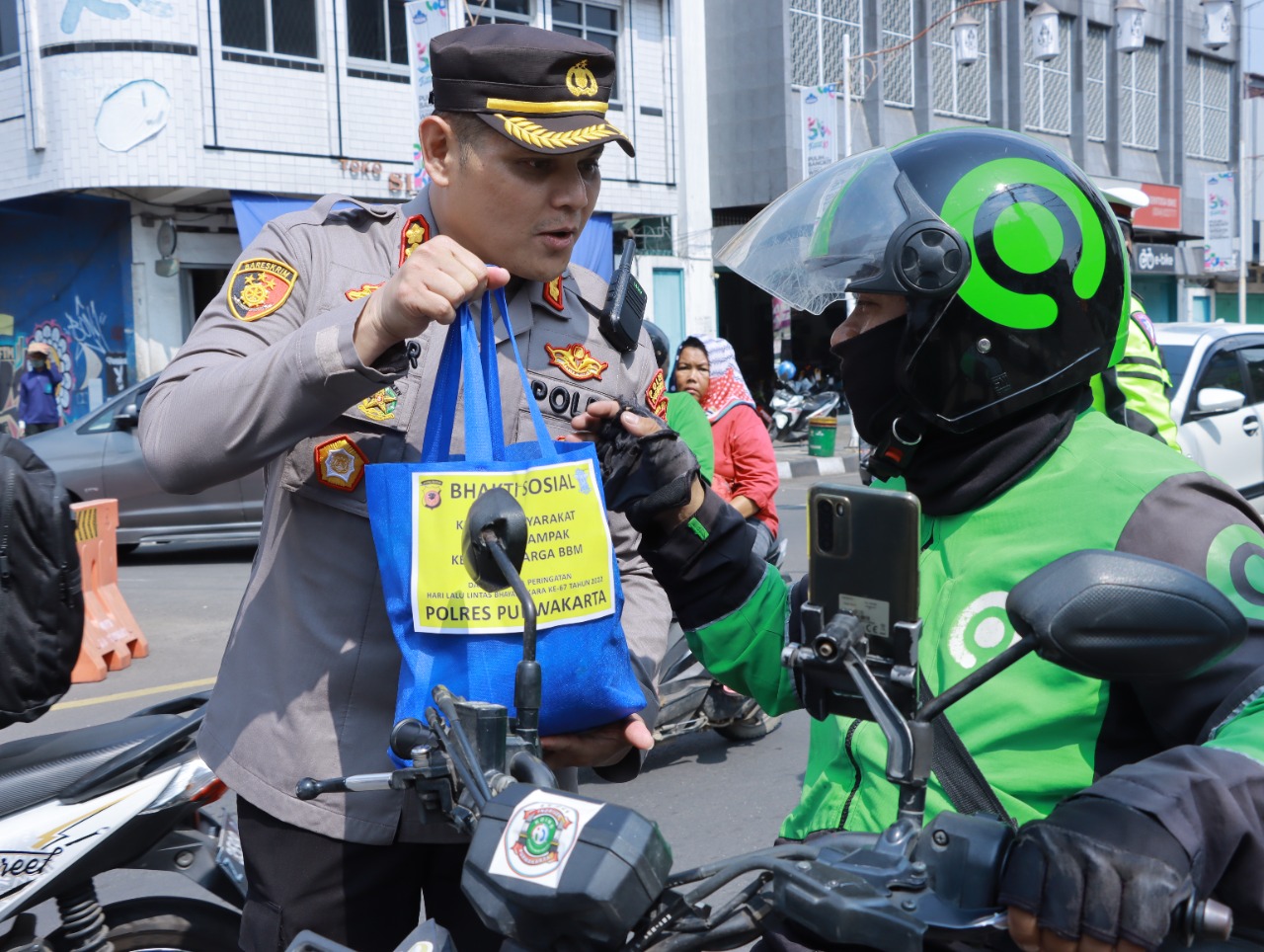 Kapolres Purwakarta, AKBP Edwar Zulkarnain menyebut, pembagian sembako merupakan wujud kepedulian Polri terhadap sopir angkot dan tukang ojek pasca bahan bakar minyak (BBM) naik.