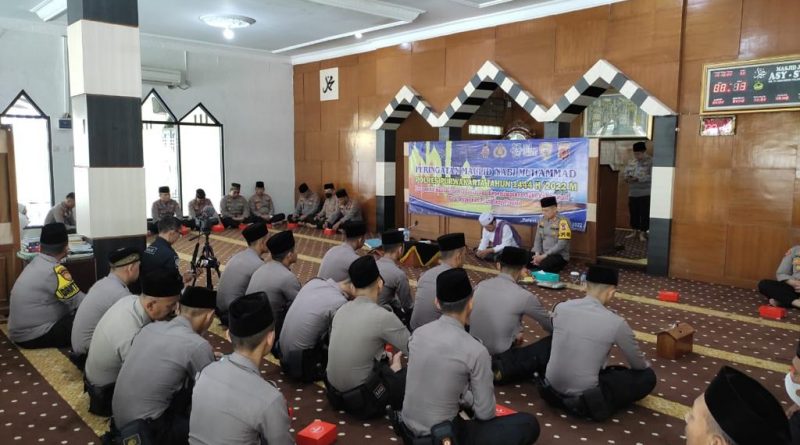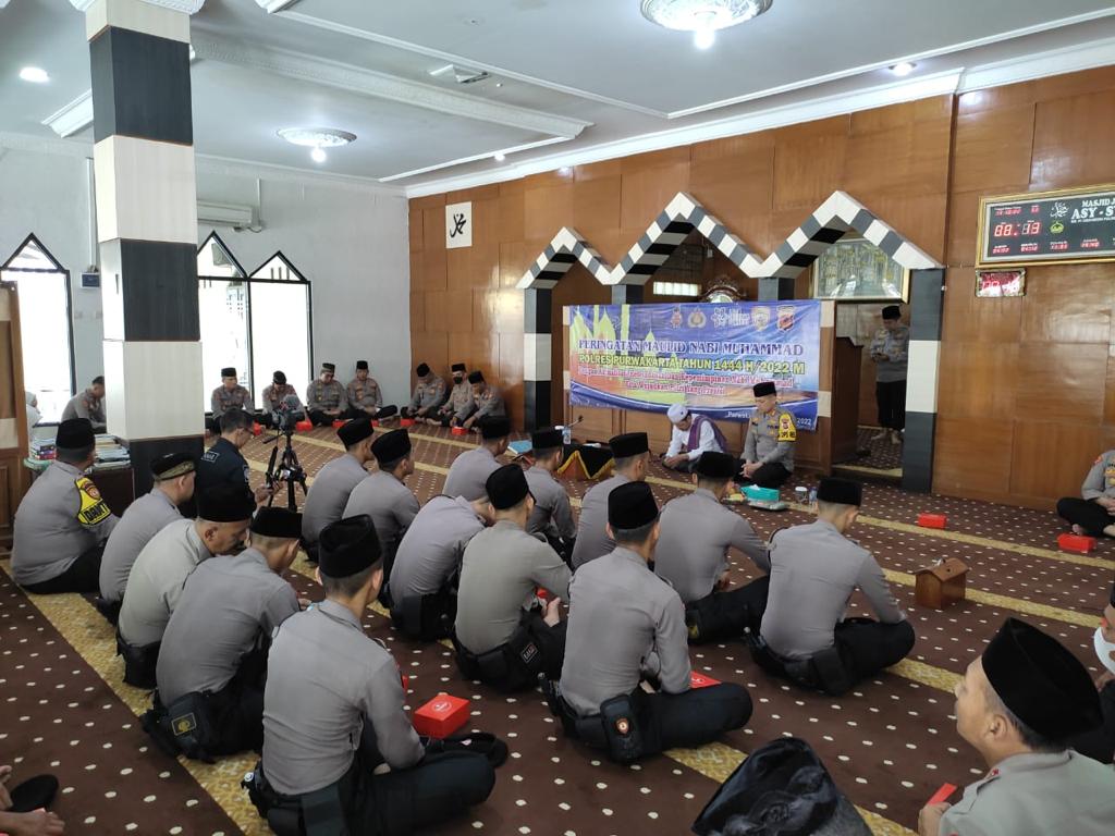 Kegiatan bertema ‘Dengan Aktualisasi Keteladanan dan Kepemimpinan Nabi Muhammad SAW Kita Wujudkan Polri yang Presisi’ itu digelar di Masjid Asy-Syifa, Mapolres Purwakarta, pada Kamis, 13 Oktober 2022.