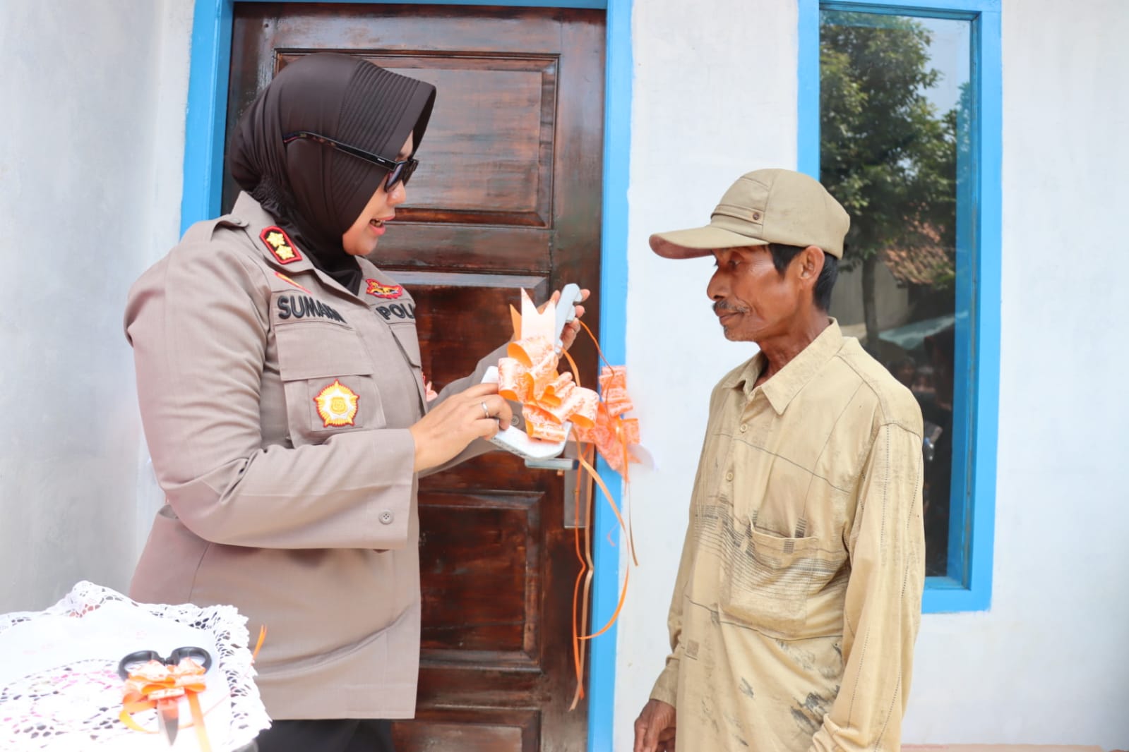 Diawali serah terima tersebut Peresmian berupa gunting secara langsung oleh Kapolres Subang AKBP Sumarni ,S.I.K.,S.H,M.H. yang saksikan hadir unsur Muspika Kecamatan Patok Beusi, Kepala Urusan Agama Kec Patokbeusi, para kades, tokoh agama tokoh masyarakat, tokoh pemuda, para donatur dan aparat pemerintahan Kecamatan Patokbeusi serta mahasiswa STIK yang sedang melaksanakan Dianmas di Wilkum Polres Subang.