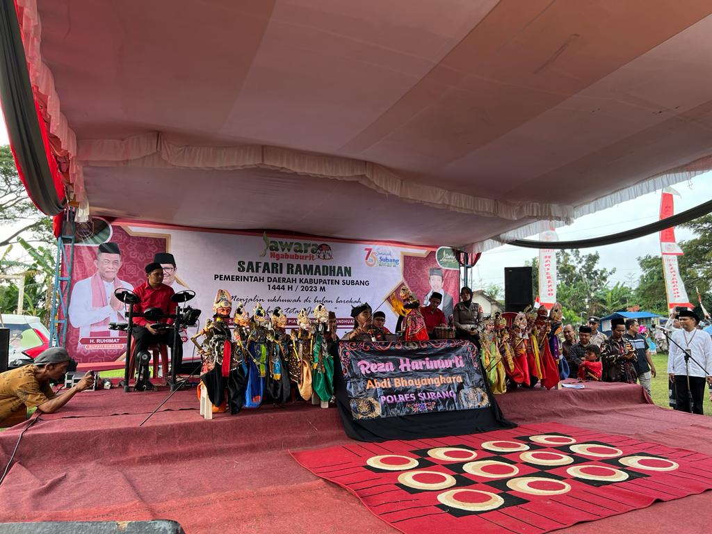 Kegiatan Ngabuburit bulan puasa tersebut diisi dengan beberapa rangkaian kegiatan yang ditampilkan, salah satunya yaitu dengan Pagelaran Wayang Golek dari Abdi …dengan Dalang Bripda Reza Harimurti, merupakan salah satu dari anggota Sat Samapta Polres Subang, mejiwai jiwa seni budaya Sunda, Wayang golek, saat itu seperti biasanya selalu tampil bareng dengan Aipda Dewi Personel Sat Lantas Polres Subang, dengan Tema “_Menjalin Ukhuwah di Bulan Barokah, Subang tetap Jawara_” yang bertempat di Lapangan Sepak Bola Desa Rancabango Patokbeusi Subang, Kamis (30/3/2023).