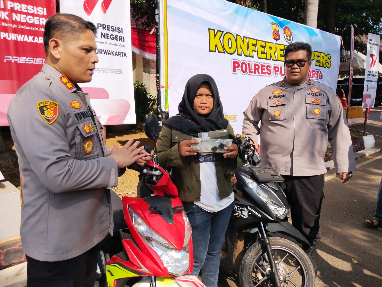 Ini merupakan kerja keras aparat Kepolisian dari Polsek Bojong dan Polres Purwakarta, Polda Jawa Barat. Polisi akhirnya berhasil menemukan kendaraan roda dua milik wanita berusia 32 tahun yang sempat hilang dua tahun yang lalu.