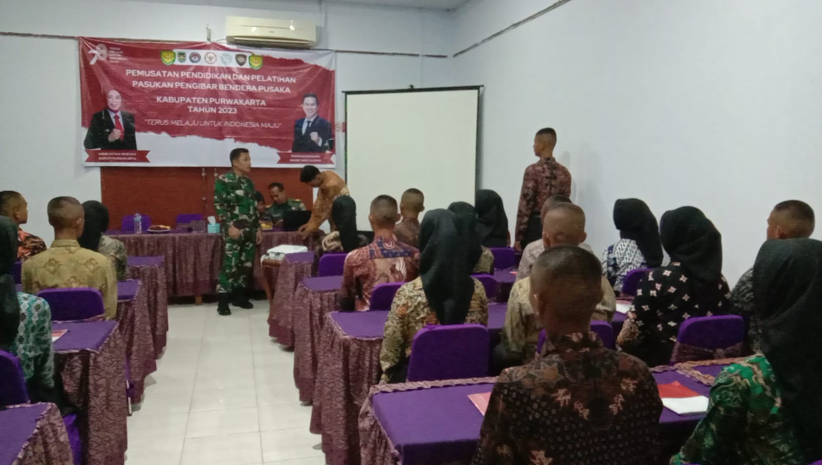Kegiatan pemberian materi bertempat di Hotel Ciwareng Inn Desa Ciwareng Kecamatan Babakan Cikao Kabupaten Purwakarta, Senin 14 Agustus 2023. Kegiatan dihadiri Yus Djunaedi Rusli, S. STP, M. (Kaban Kesbangpol), Kapten Arm Rambat (Pawas Kepelatihan Paskibra), Kapten Inf Erik Faisal (Pemberi materi), Sertu Supriana (Pelatih Paskibra).