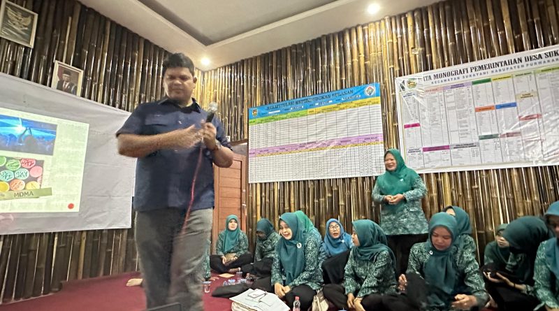 PURWAKARTA, jabarexposeraya.com – Dalam rangka mewujudkan Kampung Bebas Dari Narkoba yang bersih dari penyalahgunaan dan peredaran gelap narkoba Satuan Reserse Narkoba (Satres Narkoba) Polres Purwakarta memberikan sosialisasi tentang Bahaya dampak Penyalahgunaan narkoba kepada ibu-ibu PKK di Desa Sukatani, Kecamatan Sukatani, Kabupaten Purwakarta, pada Selasa, 5 September 2023.