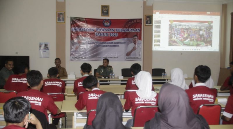 PURWAKARTA | Silaturahmi dan Sarasehan Wawasan Kebangsaan Tahun Anggaran 2023 dilaksanakan Kodim 0619/Purwakarta kepada generasi muda di Aula Badan Kesbangpol Purwakarta Jl. Veteran, Kel. Nagri Kaler, Kec/Kab. Purwakarta, Jawa Barat. Selasa,(24/10/2023).