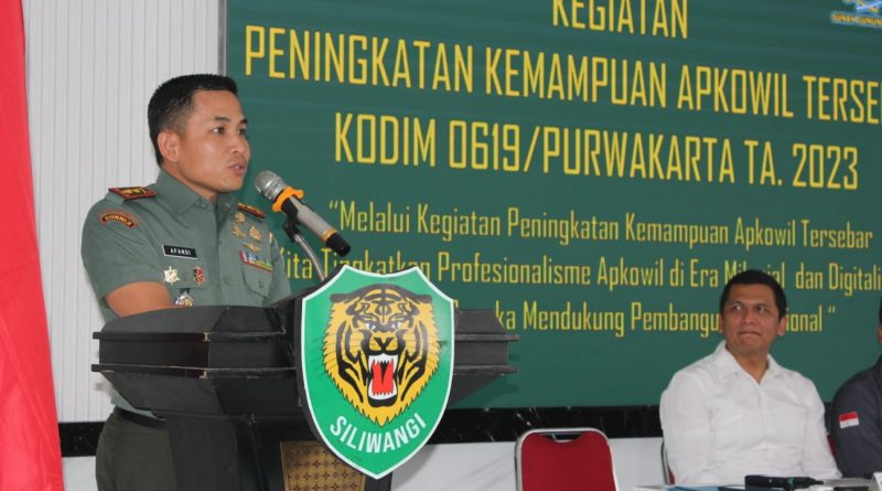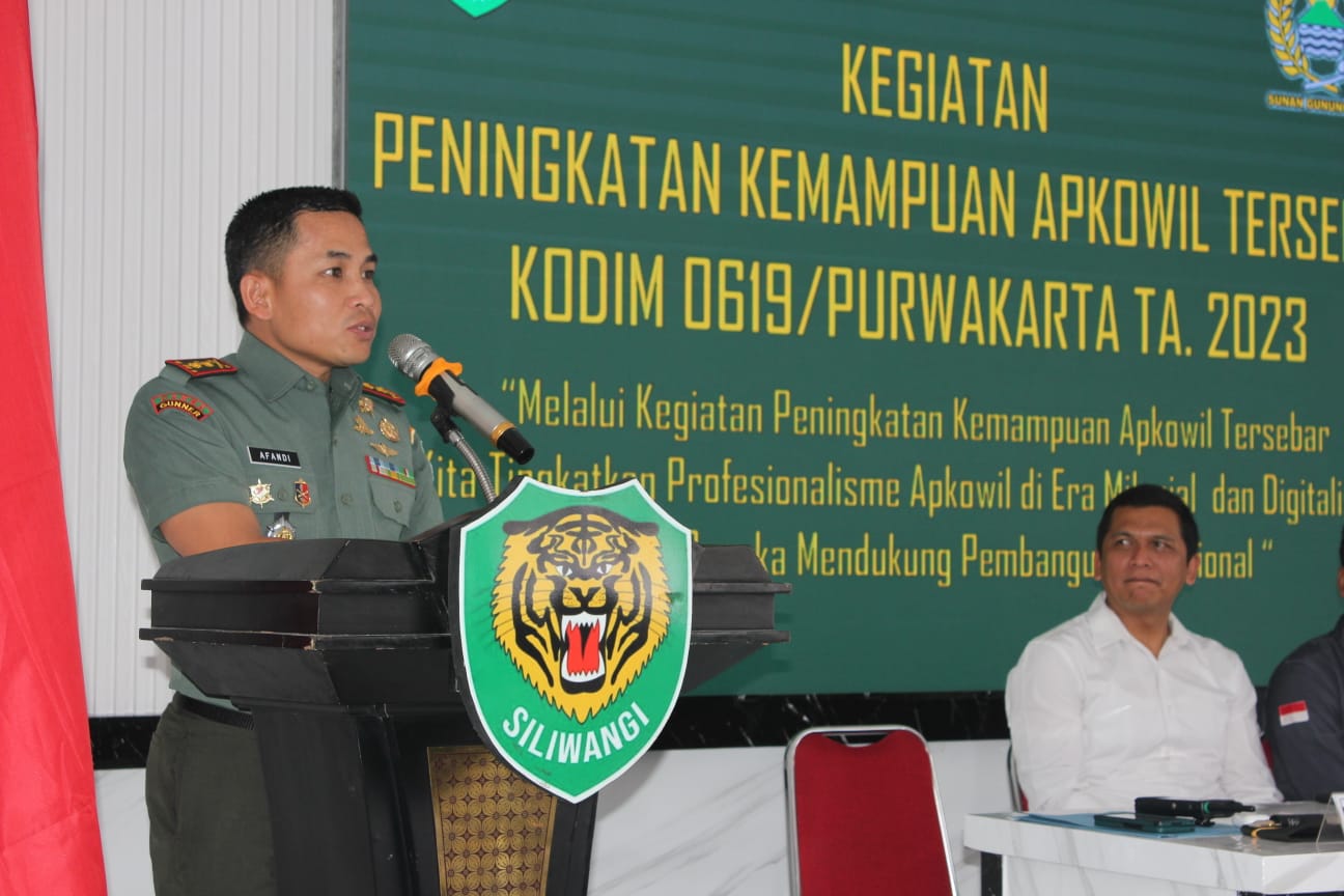 PURWAKARTA | Dalam rangka meningkatkan kemampuan Prajurit Kodim 0619/Purwakarta, Dandim 0619/Purwakarta, Letkol Arm Andi Achmad Afandi, S. Sos, M.Si, menggelar kegiatan Peningkatan Kemampuan Apkowil Tersebar TA. 2023 di Aula Makodim 0619/Purwakarta dengan penanggung jawab Kapten Inf Erik Faisal (Pasiter Dim 0619/Purwakarta. Selasa, (25/10/2023)