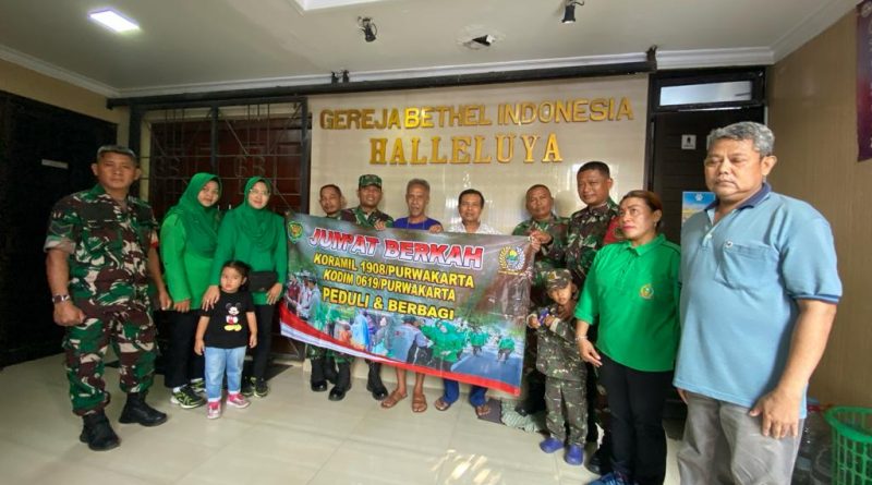 PURWAKARTA | Koramil 1908/Purwakarta Kodim 0619/Purwakarta melaksanakan kegiatan Sabtu Kasih Pembersihan Tempat Ibadah dalam semangat gotong royong para anggota TNI, Persit KCK Ranting 9 dan Jemaat bersatu.