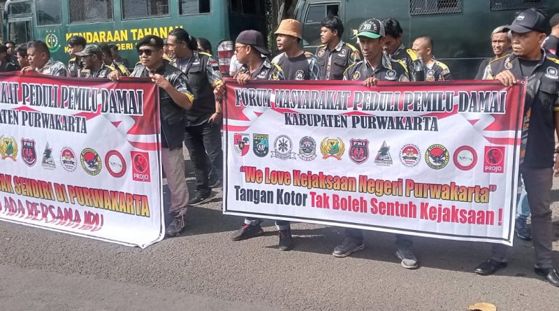 PURWAKARTA, jabarexposeraya.com – Forum Masyarakat Peduli Pemilu Damai (FMPPD) melakukan aksi damai didepan gedung kantor kejaksaan negeri (Kejari) Kabupaten Purwakarta.