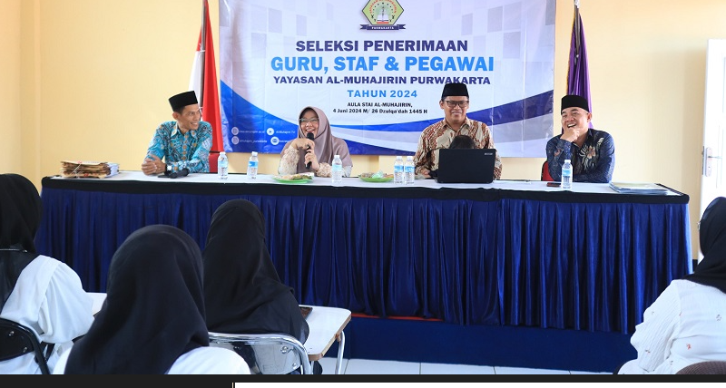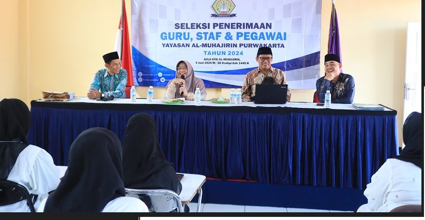 PURWAKARTA, jabarexposeraya.com – Yayasan Al Muhajirin Purwakarta gelar seleksi penerimaan Guru, Staf dan pegawai yayasan yang dilaksanakan di Aula STAI Al Muhajirin, Selasa, 04 Juni 2024, yang di buka langsung oleh ketua Yayasan Al Muhajirin, Dr. Hj. Ifa Faizah Rohmah, M.Pd.