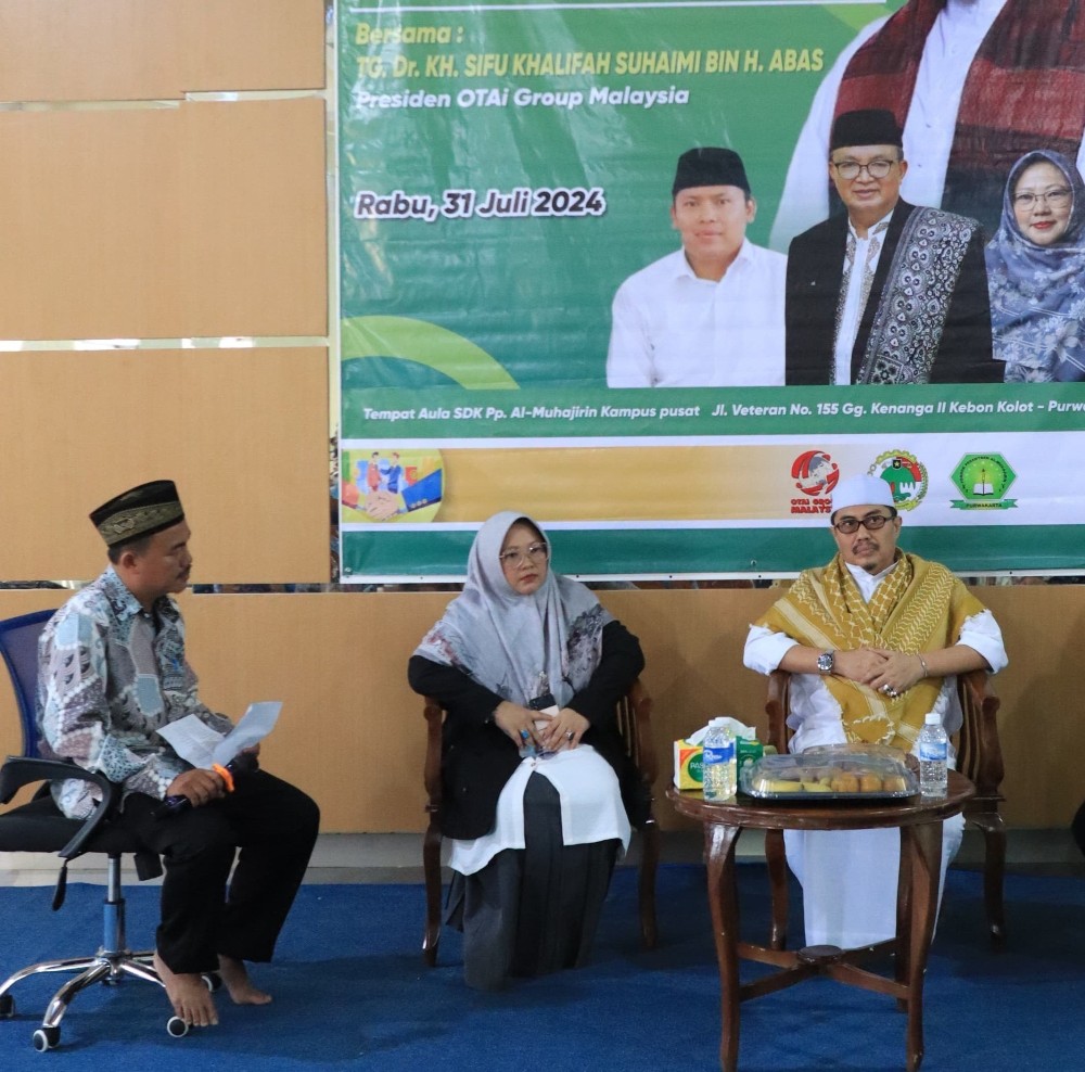 Acara ini berlangsung pada Rabu, 31 Juli 2024, di Aula SDK Ponpes Al-Muhajirin Kampus Pusat, Jl. Veteran No. 155 Gg. Kenanga II, Kebon Kolot, Purwakarta, dan dihadiri oleh Ketua Yayasan Al Muhajirin, Dr. Hj. Ifa Faizah Rohmah, M.Pd serta Presiden OTAi Group Malaysia, TG. Dr. KH. Sifu Khalifah Suhaimi.