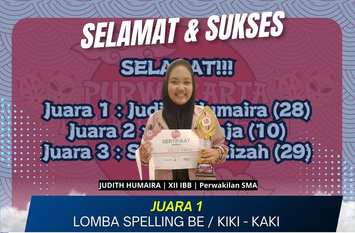 Judith menunjukkan kemampuan luar biasa dalam mengeja dan memahami kosa kata bahasa Jepang, mengalahkan peserta dari berbagai sekolah di Purwakarta.