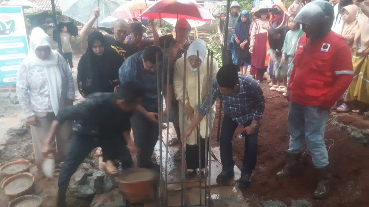 Walaupun hujan deras melanda di lokasi pembangunan mesjid, tidak menyurut kan warga berbondong-bondong datang untuk menyaksikan Calon bupati Purwakarta no urut 3 ini Ambu Ane Ratna mustika beserta wakil H. Budi hermawan melakukan peletakan batu pertama pembanguna mesjid tersebut.