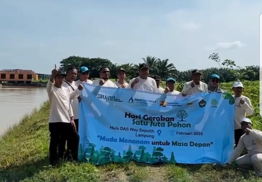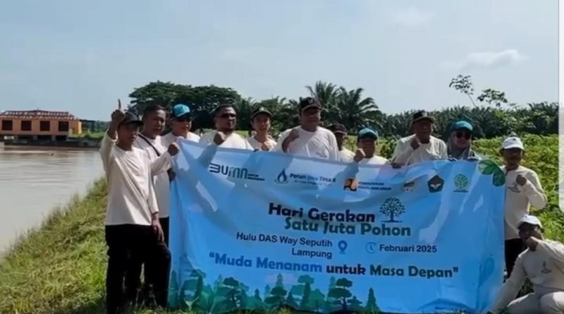 LAMPUNG, jabarexposeraya.com- Dalam rangka memperingati Hari Gerakan Satu Juta Pohon, Jasa Tirta II Unit Wilayah VII melakukan penanaman pohon di Hulu Daerah Aliran Sungai (DAS) Way Seputih dan sekitar Bendung Ajibaru, Lampung, pada Kamis (20/02) pagi. Sebanyak 1.125 bibit pohon disiapkan untuk ditanam. Kegiatan penanaman pohon dilakukan secara simbolis oleh General Manager (GM) Unit Wilayah VII, Emil Muhammad, dengan disaksikan Kepala Balai Besar Wilayah Sungai (BBWS) Mesuji Sekampung, Roy Panagom Pardede, Kepala Balai Pengelolaan Daerah Aliran Sungai (BPDAS), Way Seputih Way Sekampung, Ashadi Maryanto, serta perwakilan Yayasan Komunitas Peduli Sungai (YKPS) Tim 10, M. Nasihin. Para pihak bersinergi dan berkolaborasi melaksanakan kegiatan konservasi vegetatif.