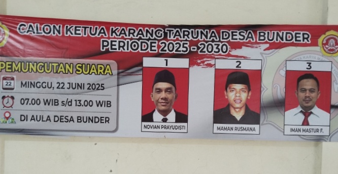 Pemilihan ini juga turut dihadiri langsung oleh Kepala Desa Bunder, Tedy Moch. Taufik, yang memberikan dukungan penuh terhadap terselenggaranya proses regenerasi kepemimpinan Karang Taruna.