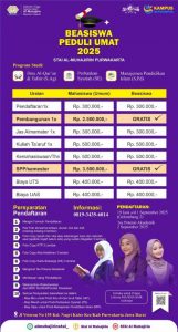 Dengan adanya program Beasiswa Peduli Umat 2025, STAI Al-Muhajirin Purwakarta menunjukkan komitmennya dalam mencerdaskan generasi bangsa melalui pendidikan tinggi berbasis nilai-nilai Islam ¹.
