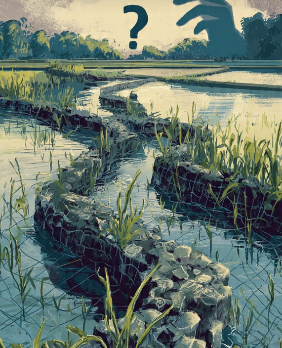 JERnews – Peningkatan jaringan irigasi kembali dipromosikan sebagai bukti keberpihakan kepada petani. Narasi yang selalu terdengar manis dan berulang: air lancar, sawah subur, panen melimpah. Namun realitas di lapangan tak selalu semulus slogan. Ketika pembangunan tembok penahan tanah (TPT) berbahan bronjong kawat di tiga kecamatan Kiarapedes, Sukatani, dan Pondoksalam, menelan anggaran hingga Rp6 miliar, publik mulai bertanya dengan nada yang tak lagi bisa diredam.