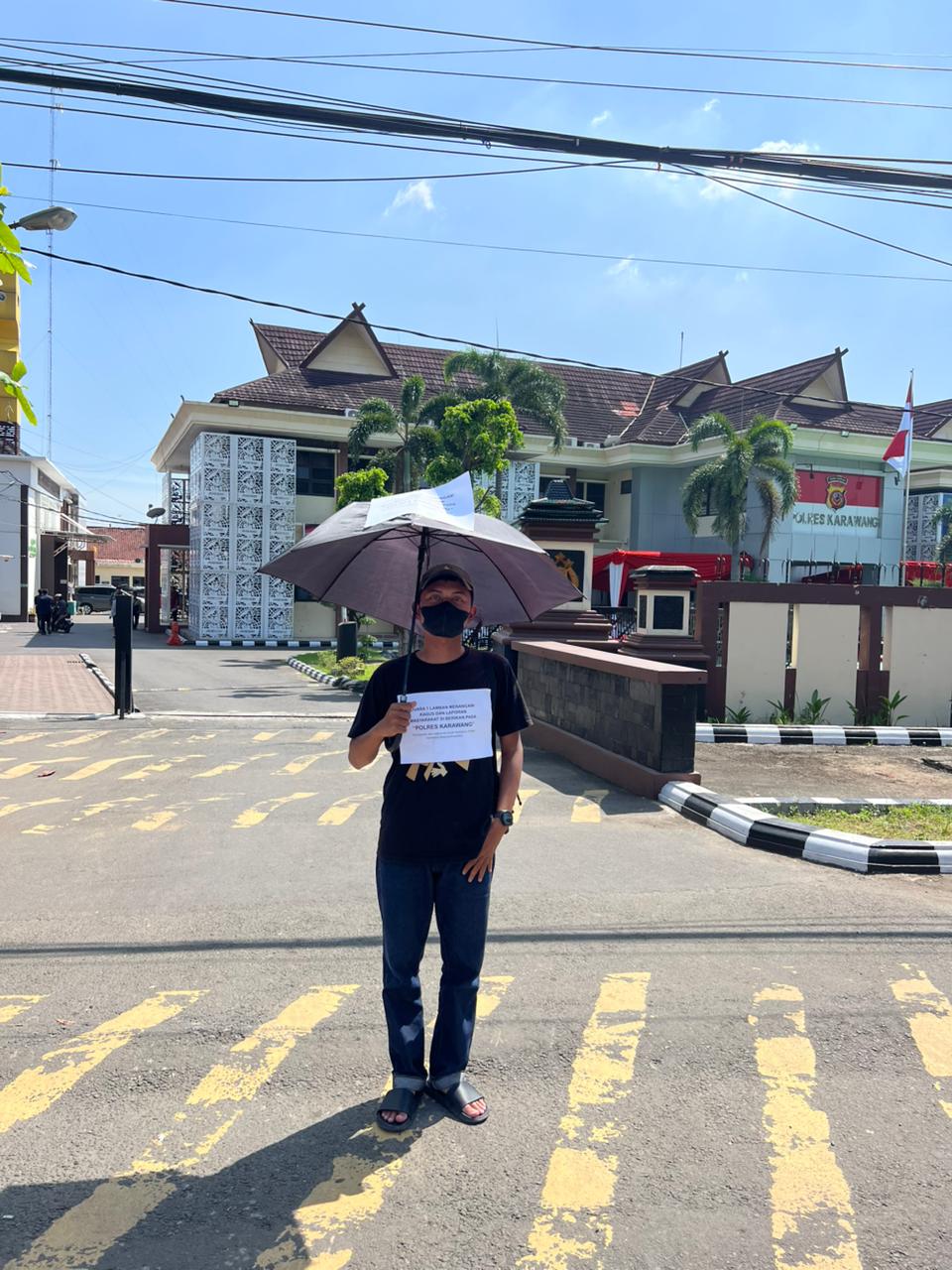 JERnews — Seorang pemuda asal Karawang melakukan aksi diam seorang diri di depan kantor Polres Karawang pada hari ini sebagai bentuk protes terhadap lambannya penanganan sejumlah laporan masyarakat oleh aparat kepolisian. Aksi tersebut dilakukan dengan membawa poster kritik dan berdiri sendirian di depan area kantor kepolisian tanpa melakukan orasi.