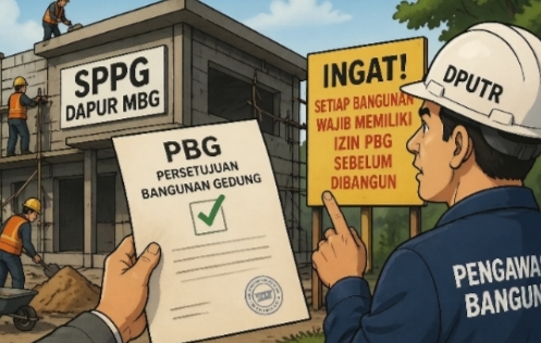 DPUTR pun mendorong seluruh pihak pelaksana pembangunan SPPG segera melengkapi dokumen perizinan melalui sistem SIMBG agar tidak terjadi pemanfaatan bangunan tanpa legalitas.